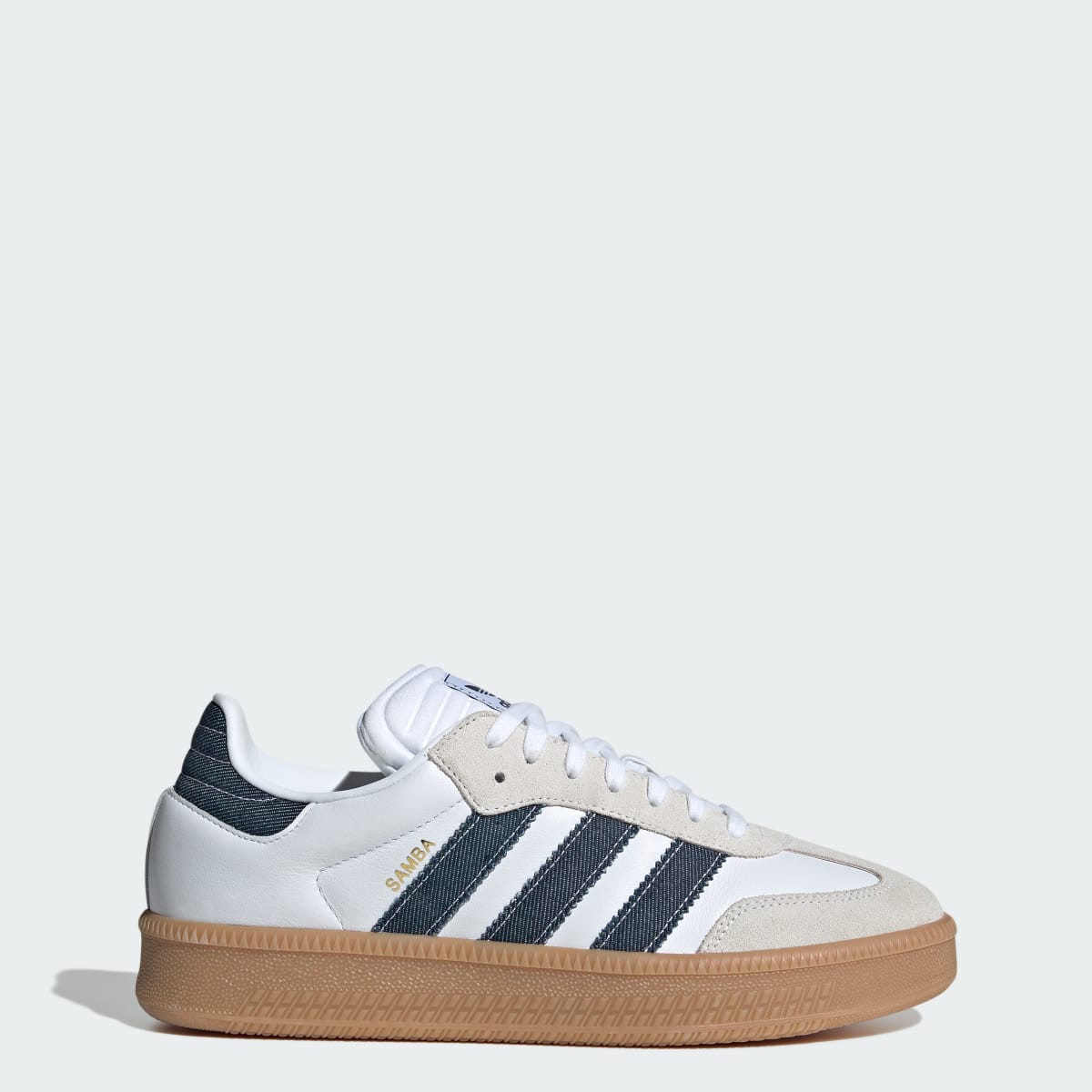 Get your style game in gear with these adidas Samba XLG Shoes, an iconic athletic low top retooled for the street scene. This all-time favourite design uses premium leather and textile, with a double-stitched T-toe and iconic ribbed tongue and heel tab. Serrated 3-Stripes and gold-letter Samba branding recall the original, while the updated sole and sidewall pattern give it a fresh, modern look. The Samba looks great with jeans or a pair of sleekly woven track pants.