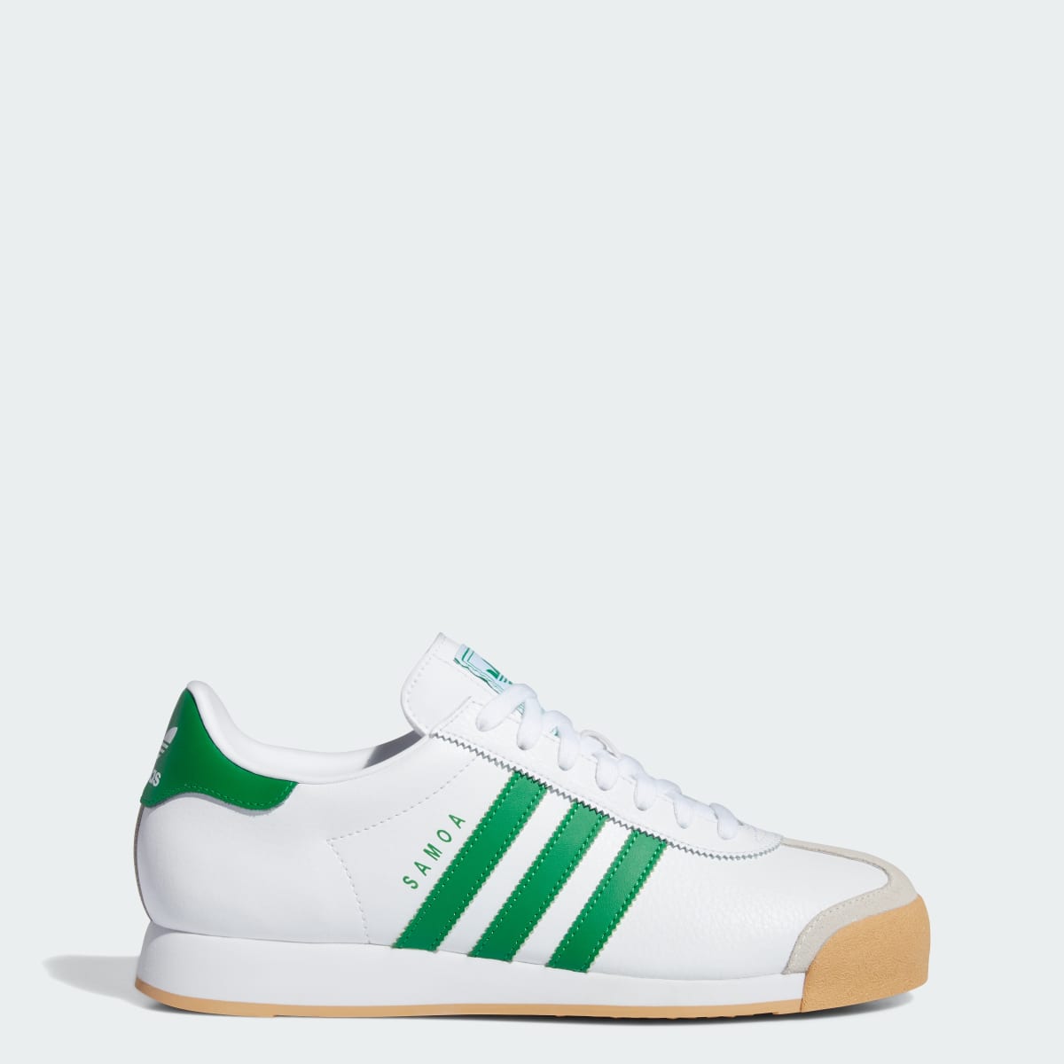 With a slim shape and sleek feel, the Samoa is a casual streetwear classic. These shoes have a leather upper with contrast 3-Stripes and a Trefoil logo on the tongue. The rubber toe bumper is a Samoa signature. Everything rides on an EVA midsole for all-day comfort.